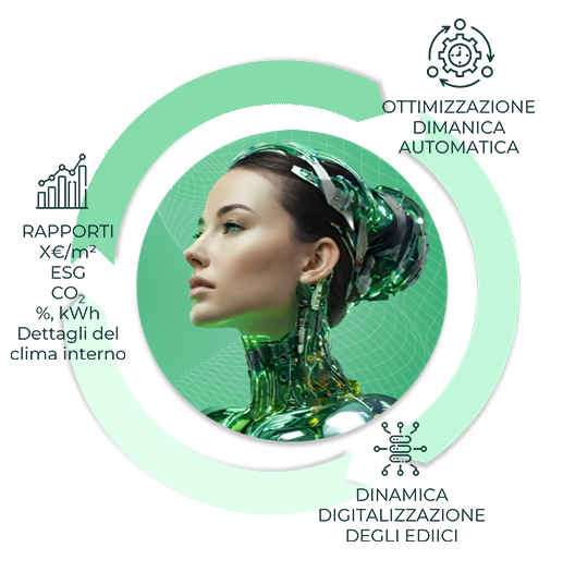 Jenny è  l’AI di R8 che ottimizza l’efficienza energetica. Si integra perfettamente con i sistemi di automazione degli edifici BMS, ottimizzando il funzionamento di riscaldamento, ventilazione e aria condizionata (HVAC) 24 ore su 24, 7 giorni su 7 effettuando regolazioni del sistema anche ogni 15 minuti.